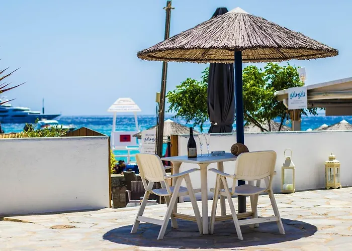 Stedet ligger 4 km fra Platys Gialos bymidte og 5 km fra Mykonos lufthavn.